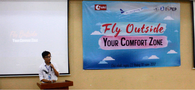 After a brief introduction about ISTEP of Mr. Binh, Mr. Le Cong Minh, organizing committee president of the event presented the result of the pre-event survey which was launched in September. Based on the result, it was clear that student in HMU had to face a lot of difficulties when they tried to participate in an exchange program and this situation was the motivation for him and the project to organize this event. He also indicated that the main purpose of this event was not only to introduce exchange students programs at Hanoi Medical University but also to inspire students to “Fly outside their comfort zone”.