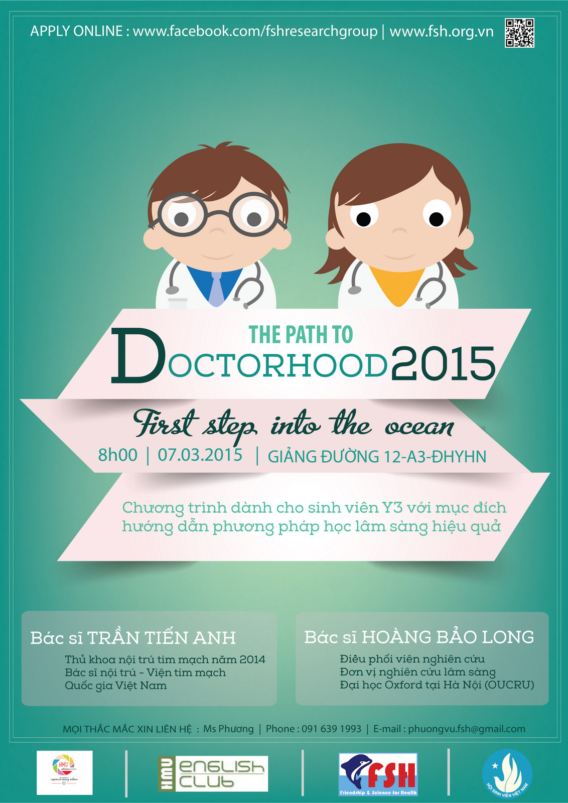 Phương pháp học lâm sàng là chủ đề tuy không mới nhưng vẫn làm nhiều sinh viên ngành Y cảm thấy khá lúng túng. Với mong muốn giúp các bạn sinh viên Y khoa nắm được những điểm cốt yếu để có một phương pháp học lâm sàng hiệu quả, nhóm FSH quyết định phối hợp với CLB Tiếng Anh trường Đại học Y Hà Nội tổ chức buổi tư vấn The path to doctorhood 2015 với chủ đề First step into the ocean. Các diễn giả của chương trình đều là các cựu sinh viên của trường Đại học Y Hà Nội hiện đang học tập và làm việc tại các đơn vị, bệnh viện uy tín.